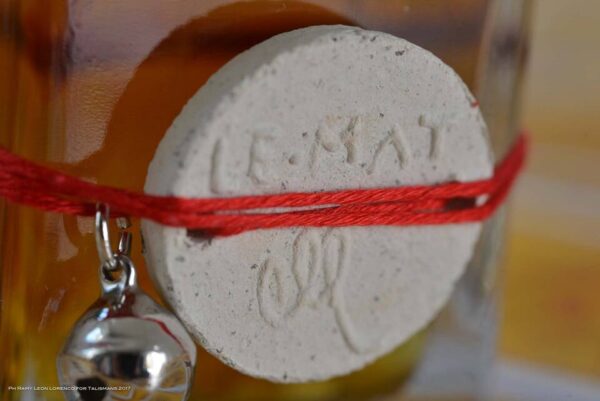 LE MAT is housed in a heavy French-made glass bottle with a cap fashioned from a handful of clay, moulded by the hands of Tuscan sculptor Alessandro Reggioli, each one imprinted with the artist’s fingerprints and therefore unique. Fastened around the bottle is a handmade terracotta charm incised with the words LE MAT and a tiny bell announcing LE MAT’s arrival.
